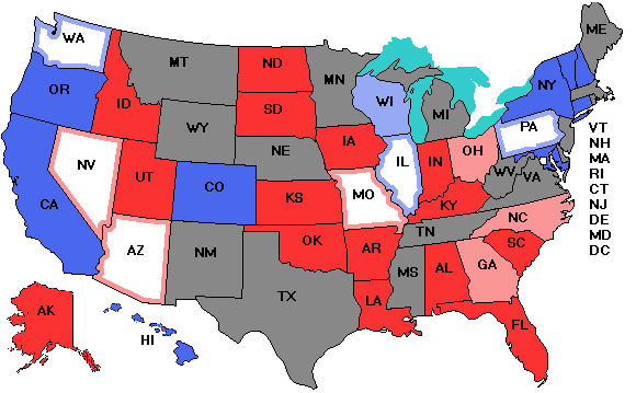 • There is only one Democratic-held seat that is presently in play (Nevada). In contrast, as many as 16 Republican-held seats are or could be in play, with at least six of those being in significant danger (Wisconsin, Illinois, Pennsylvania, Florida, Ohio, and New Hampshire, in roughly that order).