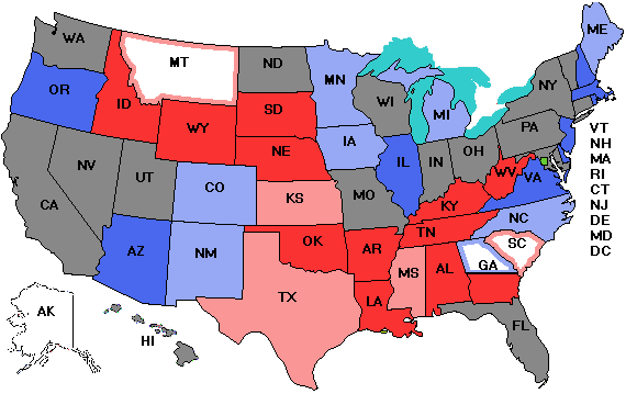 As majority leader, in principle Mitch McConnell ought to have no trouble getting reelected. But even though he compromises very little with the Democrats, tea partiers consider that far too much. While Kentucky generally casts its electoral votes for the Republican candidate, three of the statewide officers are Democrats, so Kentuckians do vote for the blue team sometimes. More than sometimes, actually; 9 of the last 11 governors, including the current one, Andy Beshear, were Democrats. To face McConnell, the blue team got its dream candidate, retired Marine Corps pilot Amy McGrath, who nearly won a House race in a deep red district in 2018 and who is a great campaigner and fundraiser. First, she had to beat back a primary challenge from a progressive state senator, but she did that. There's enough anti-McConnell energy out there that she is outraising McConnell. McConnell has already unleashed the attack dogs, including an anti-McGrath website called wrongpathmcgrath.com. He's also counting on presidential coattails, as Donald Trump is much more popular with Kentucky Republicans than their senator is. The Majority Leader is the favorite for now, but this race is also squarely on the "watch" list.
