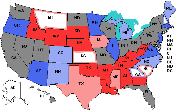 As majority leader, in principle Mitch McConnell ought to have no trouble getting reelected. But even though he compromises very little with the Democrats, tea partiers consider that far too much. While Kentucky generally casts its electoral votes for the Republican candidate, three of the statewide officers are Democrats, so Kentuckians do vote for the blue team sometimes. More than sometimes, actually; 9 of the last 11 governors, including the current one, Andy Beshear, were Democrats. To face McConnell, the blue team got its dream candidate, retired Marine Corps pilot Amy McGrath, who nearly won a House race in a deep red district in 2018 and who is a great campaigner and fundraiser. First, she had to beat back a primary challenge from a progressive state senator, but she did that. There's enough anti-McConnell energy out there that she is outraising McConnell. McConnell has already unleashed the attack dogs, including an anti-McGrath website called wrongpathmcgrath.com. He's also counting on presidential coattails, as Donald Trump is much more popular with Kentucky Republicans than their senator is. The Majority Leader is the favorite for now, but this race is also squarely on the "watch" list.