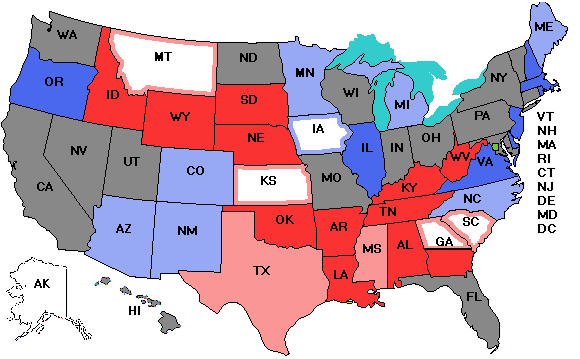 As majority leader, in principle Mitch McConnell ought to have no trouble getting reelected. But even though he compromises very little with the Democrats, tea partiers consider that far too much. While Kentucky generally casts its electoral votes for the Republican candidate, three of the statewide officers are Democrats, so Kentuckians do vote for the blue team sometimes. More than sometimes, actually; 9 of the last 11 governors, including the current one, Andy Beshear, were Democrats. To face McConnell, the blue team got its dream candidate, retired Marine Corps pilot Amy McGrath, who nearly won a House race in a deep red district in 2018 and who is a great campaigner and fundraiser. First, she had to beat back a primary challenge from a progressive state senator, but she did that. There's enough anti-McConnell energy out there that she is outraising McConnell. McConnell has already unleashed the attack dogs, including an anti-McGrath website called wrongpathmcgrath.com. He's also counting on presidential coattails, as Donald Trump is much more popular with Kentucky Republicans than their senator is. The Majority Leader is the favorite for now, but this race is also squarely on the "watch" list.