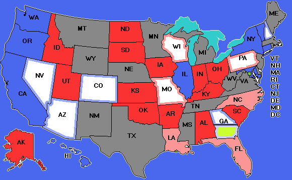 As majority leader, in principle Mitch McConnell ought to have no trouble getting reelected. But even though he compromises very little with the Democrats, tea partiers consider that far too much. While Kentucky generally casts its electoral votes for the Republican candidate, three of the statewide officers are Democrats, so Kentuckians do vote for the blue team sometimes. More than sometimes, actually; 9 of the last 11 governors, including the current one, Andy Beshear, were Democrats. To face McConnell, the blue team got its dream candidate, retired Marine Corps pilot Amy McGrath, who nearly won a House race in a deep red district in 2018 and who is a great campaigner and fundraiser. First, she had to beat back a primary challenge from a progressive state senator, but she did that. There's enough anti-McConnell energy out there that she is outraising McConnell. McConnell has already unleashed the attack dogs, including an anti-McGrath website called wrongpathmcgrath.com. He's also counting on presidential coattails, as Donald Trump is much more popular with Kentucky Republicans than their senator is. The Majority Leader is the favorite for now, but this race is also squarely on the "watch" list.