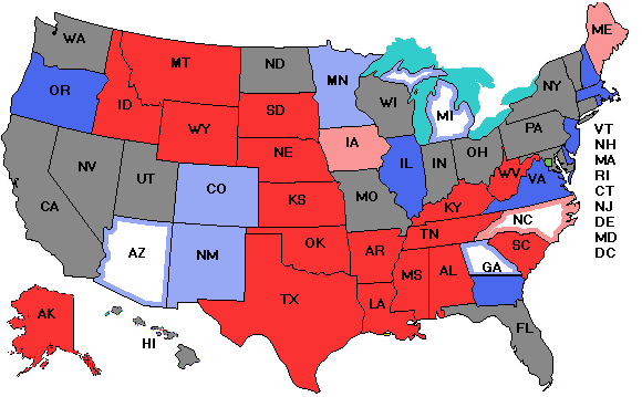 As majority leader, in principle Mitch McConnell ought to have no trouble getting reelected. But even though he compromises very little with the Democrats, tea partiers consider that far too much. While Kentucky generally casts its electoral votes for the Republican candidate, three of the statewide officers are Democrats, so Kentuckians do vote for the blue team sometimes. More than sometimes, actually; 9 of the last 11 governors, including the current one, Andy Beshear, were Democrats. To face McConnell, the blue team got its dream candidate, retired Marine Corps pilot Amy McGrath, who nearly won a House race in a deep red district in 2018 and who is a great campaigner and fundraiser. First, she had to beat back a primary challenge from a progressive state senator, but she did that. There's enough anti-McConnell energy out there that she is outraising McConnell. McConnell has already unleashed the attack dogs, including an anti-McGrath website called wrongpathmcgrath.com. He's also counting on presidential coattails, as Donald Trump is much more popular with Kentucky Republicans than their senator is. The Majority Leader is the favorite for now, but this race is also squarely on the "watch" list.