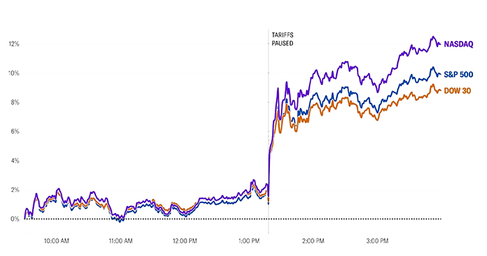 15% over 3 days, then the Dow went up nearly 3,000 points yesterday on the news that the tariffs have been paused. Here