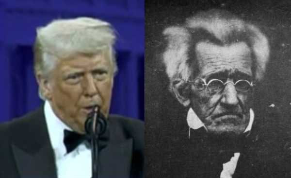 One of these photos is of Donald Trump, and was taken this week during the speech where he bragged to the NRCC about his "war on the world." The other is of Andrew Jackson, taken just months before he died, by which point he was suffering from numerous chronic conditions, and had lost all his teeth. Can you tell which one is Trump and which one is Jackson? Not easy, is it?