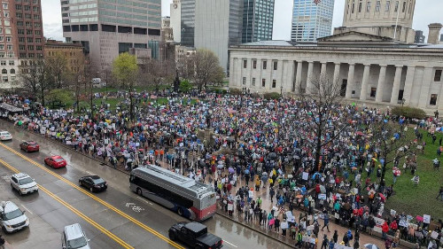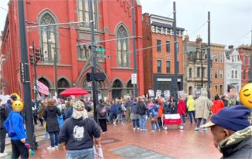 E.S. in Cincinnati, OH, writes: My husband and I joined over 2,000 protesters in downtown Cincinnati, despite significant rain all morning. It was invigorating, and as one of the speakers said, this is just the beginning of our action.