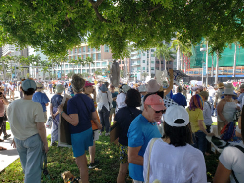 E.C. in Miami, FL, writes: Grabbing some shade at the Miami protest. We estimated about 2,000 people.