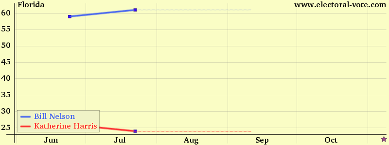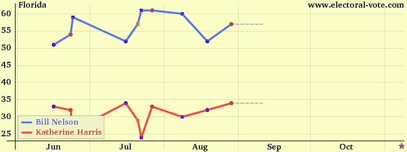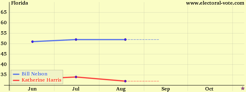 The y axis is the percentage of the voters who said they would vote for the candidate. Every point is plotted on the middle date of its poll. For additional state polls, click on a state abbreviation or Next:AZ CA CT DE FL HI IN ME MD MA MI MN MS MO MT NE NV NJ NM NY ND OH PA RI TN TX UT VT VA WA WV WI WY Quinnipiac Univ.