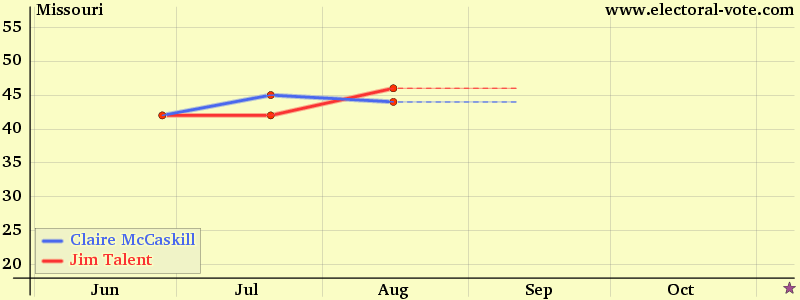 The y axis is the percentage of the voters who said they would vote for the candidate. Every point is plotted on the middle date of its poll. For additional state polls, click on a state abbreviation or Next:AZ CA CT DE FL HI IN ME MD MA MI MN MS MO MT NE NV NJ NM NY ND OH PA RI TN TX UT VT VA WA WV WI WY Rasmussen