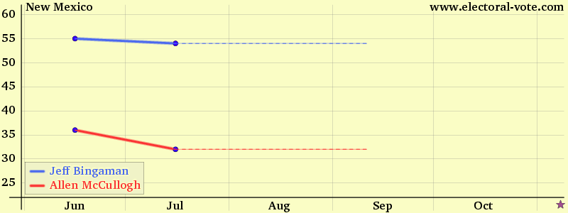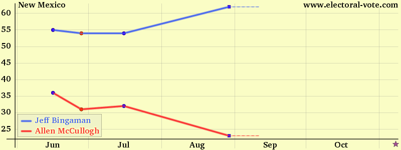 The y axis is the percentage of the voters who said they would vote for the candidate. Every point is plotted on the middle date of its poll. For additional state polls, click on a state abbreviation or Next:AZ CA CT DE FL HI IN ME MD MA MI MN MS MO MT NE NV NJ NM NY ND OH PA RI TN TX UT VT VA WA WV WI WY Zogby