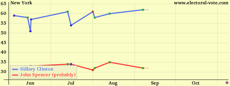 The y axis is the percentage of the voters who said they would vote for the candidate. Every point is plotted on the middle date of its poll. For additional state polls, click on a state abbreviation or Next:AZ CA CT DE FL HI IN ME MD MA MI MN MS MO MT NE NV NJ NM NY ND OH PA RI TN TX UT VT VA WA WV WI WY Marist College
