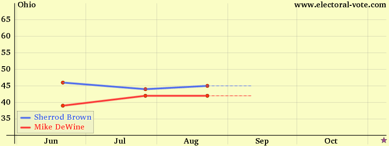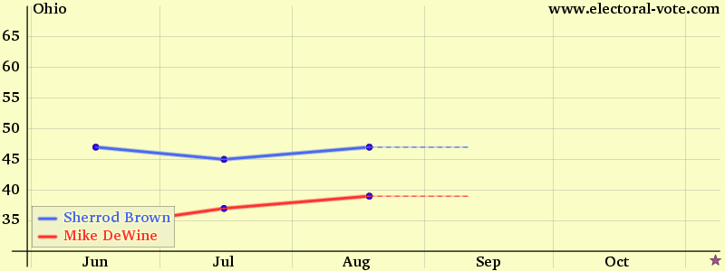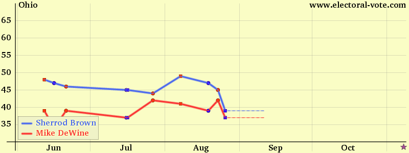 The y axis is the percentage of the voters who said they would vote for the candidate. Every point is plotted on the middle date of its poll. For additional state polls, click on a state abbreviation or Next:AZ CA CT DE FL HI IN ME MD MA MI MN MS MO MT NE NV NJ NM NY ND OH PA RI TN TX UT VT VA WA WV WI WY Rasmussen