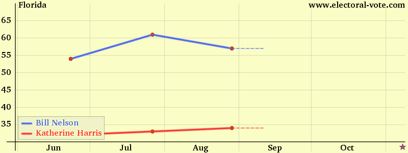 The y axis is the percentage of the voters who said they would vote for the candidate. Every point is plotted on the middle date of its poll. For additional state polls, click on a state abbreviation or Next:AZ CA CT DE FL HI IN ME MD MA MI MN MS MO MT NE NV NJ NM NY ND OH PA RI TN TX UT VT VA WA WV WI WY Rasmussen