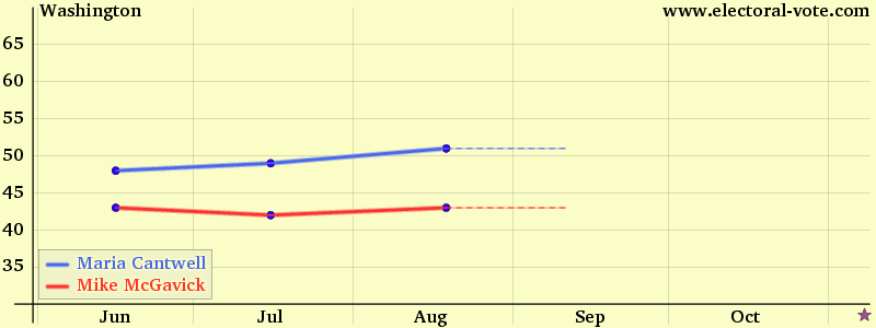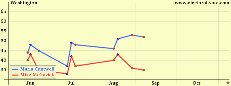 The y axis is the percentage of the voters who said they would vote for the candidate. Every point is plotted on the middle date of its poll. For additional state polls, click on a state abbreviation or Next:AZ CA CT DE FL HI IN ME MD MA MI MN MS MO MT NE NV NJ NM NY ND OH PA RI TN TX UT VT VA WA WV WI WY Rasmussen
