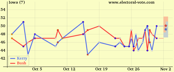 The bands just after election day show the exit polls and their MoEs. The stars indicate the final results.