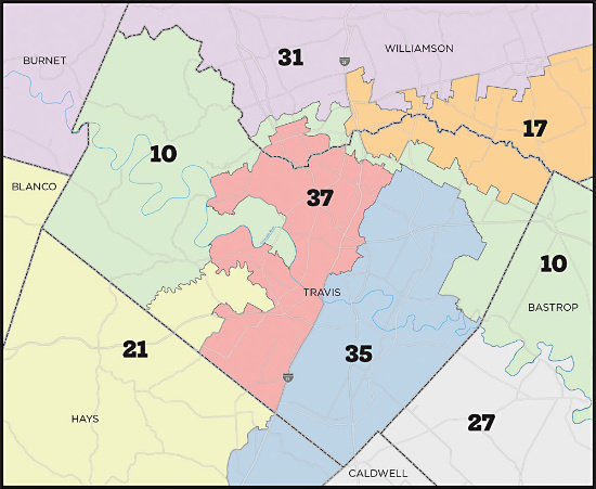 K.R. in Austin, TX, writes: At least in Travis County, where Austin is located, I can't imagine more gerrymandering. Our county has 5 districts!